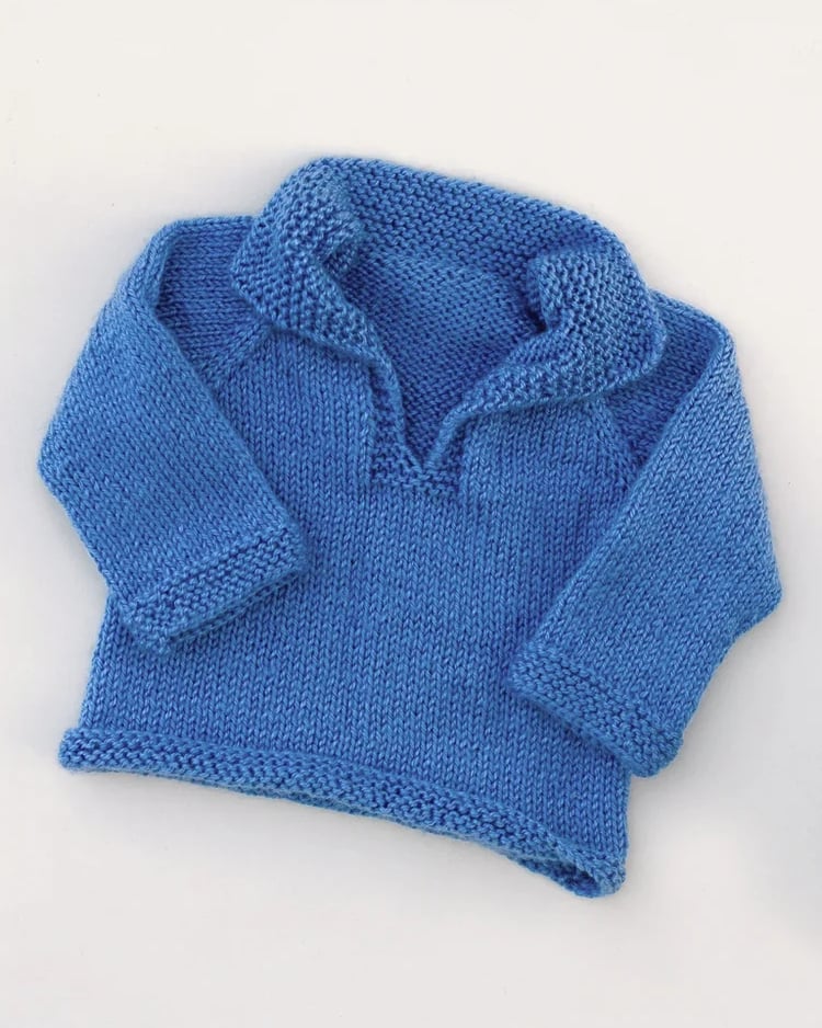 Sweet sky blue collared sweater. Knitted for someone special but now looking for its second home. In well-cared-for second-hand condition.